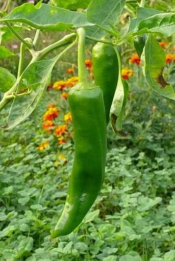 Navaho is a hybridised F1 Anaheim variety that features large fruit and an excellent set. The plant produces predominately two-lobed 20cm (8in) long by 5cm (2in) wide, smooth skinned peppers which mature from dark green to brilliant red.[ 3]
