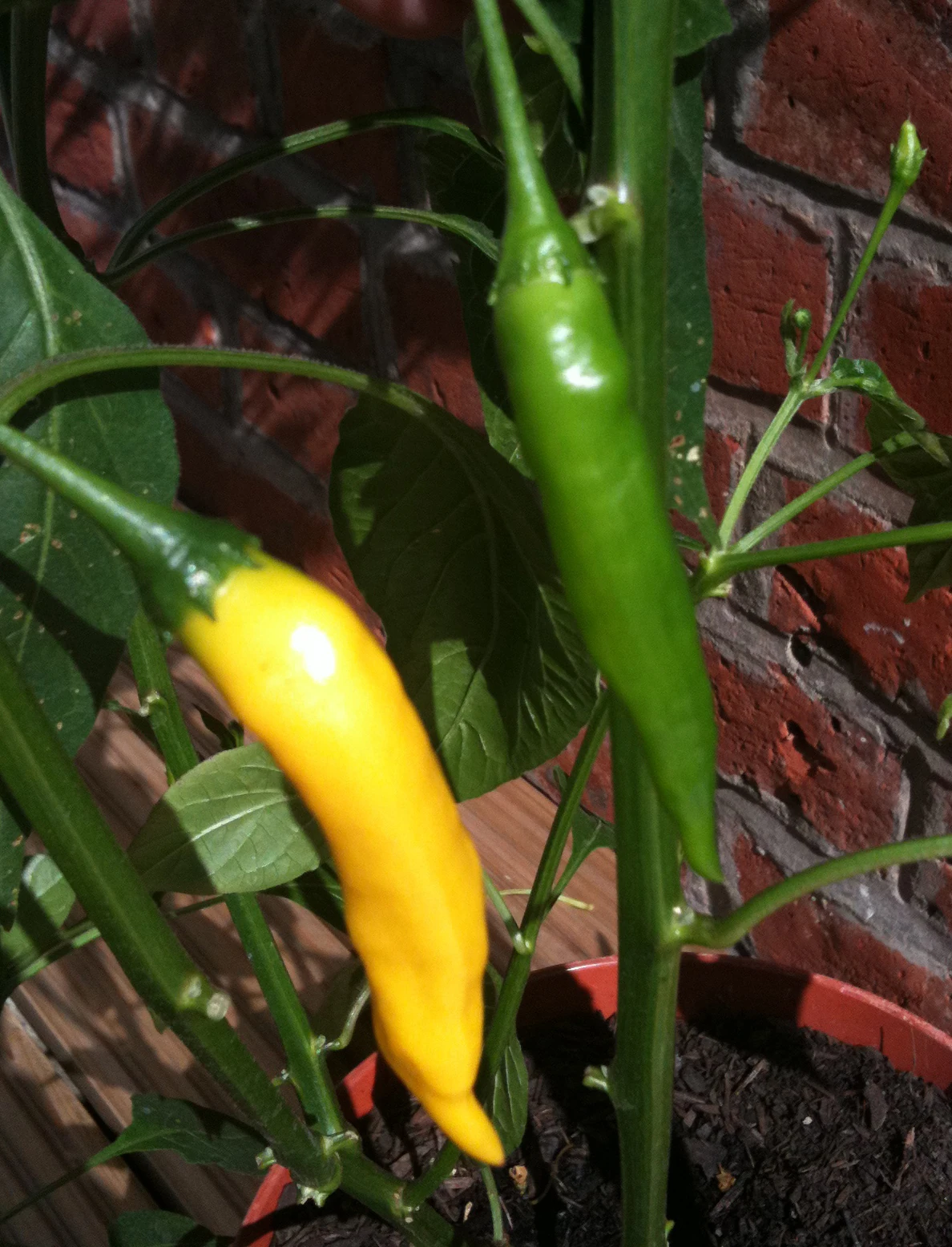 Ripe (yellow) and unripe (green) hot lemon chillies