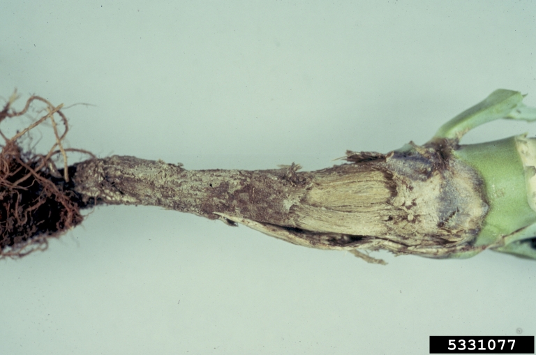 Base of stem becomes black and shrunken. Seedlings often die; the plants which survive grow very slowly and stems break easily.[1]